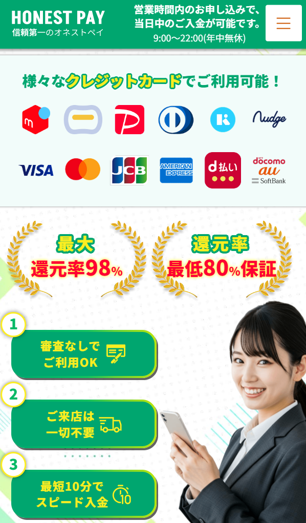 入金までの時間がかなり早かったです。クレカ現金化ならおすすめ。