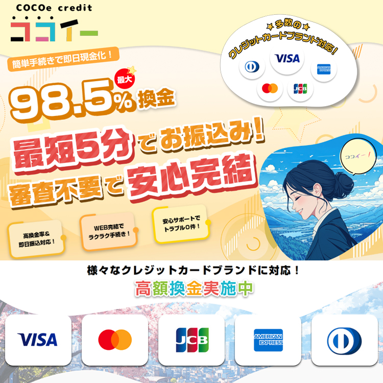 クレジットカード現金化で即日入金してくれた。入金まで早くておすすめです。